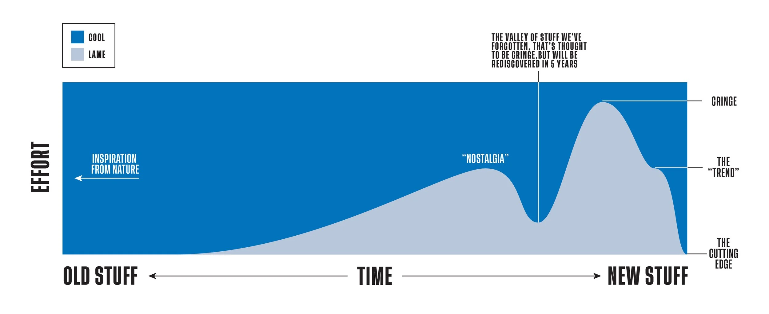 It depicts the amount of effort required to make something cool, based on the age of your influences.